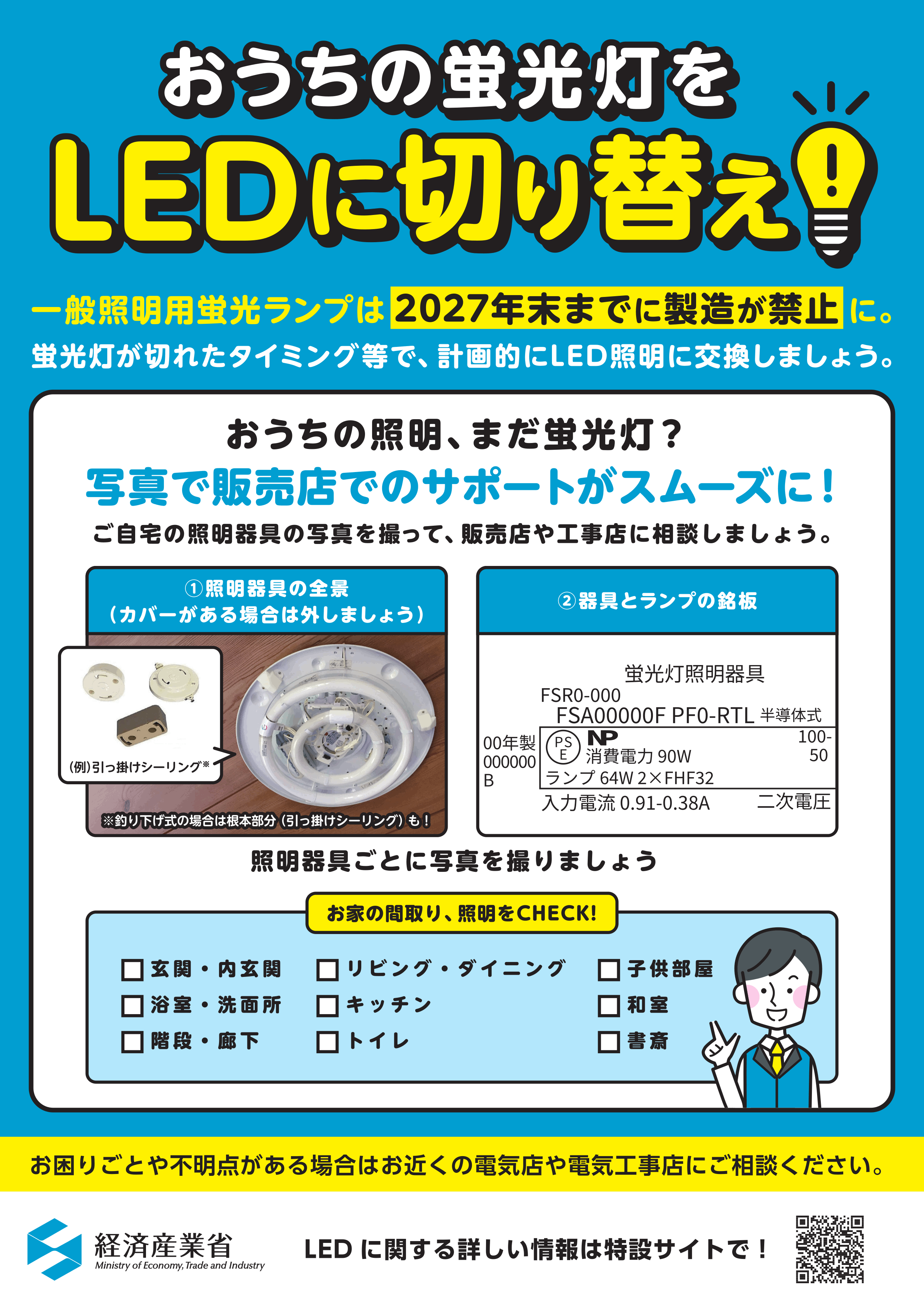 当自治会は、自主防災組織を始めとした防犯・防災・学童見守りパトロール、福祉活動、各種イベントの開催、文化活動など地域コミュニティに取り組んでいます。 ニュース LEDに切り替えを!一般照明用蛍光ランプは2027年12月までに製造・輸出入が禁止に!
